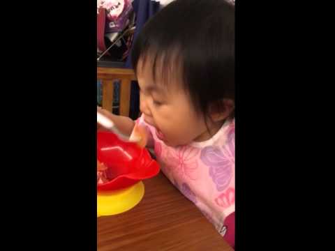 八點張小孩吵著要吃水果,把他吃東西的大氣樣拍下來